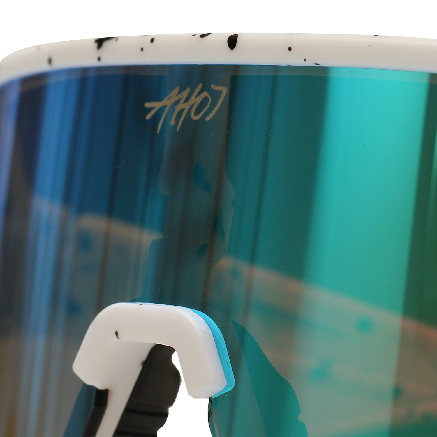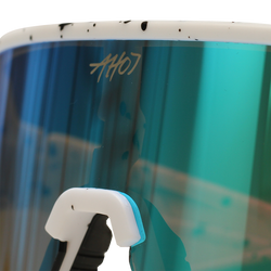 Egal ob Sonne, Party oder einfach nur Style - unsere neue Schnelle Brille macht sofort brausig gute Laune. Mit weißem Sprenkel-Rahmen, blau verspiegelten Gläsern und kleinem Ahoj-Logo sieht sie aus, als würde Sommer durch die Linse leuchten.