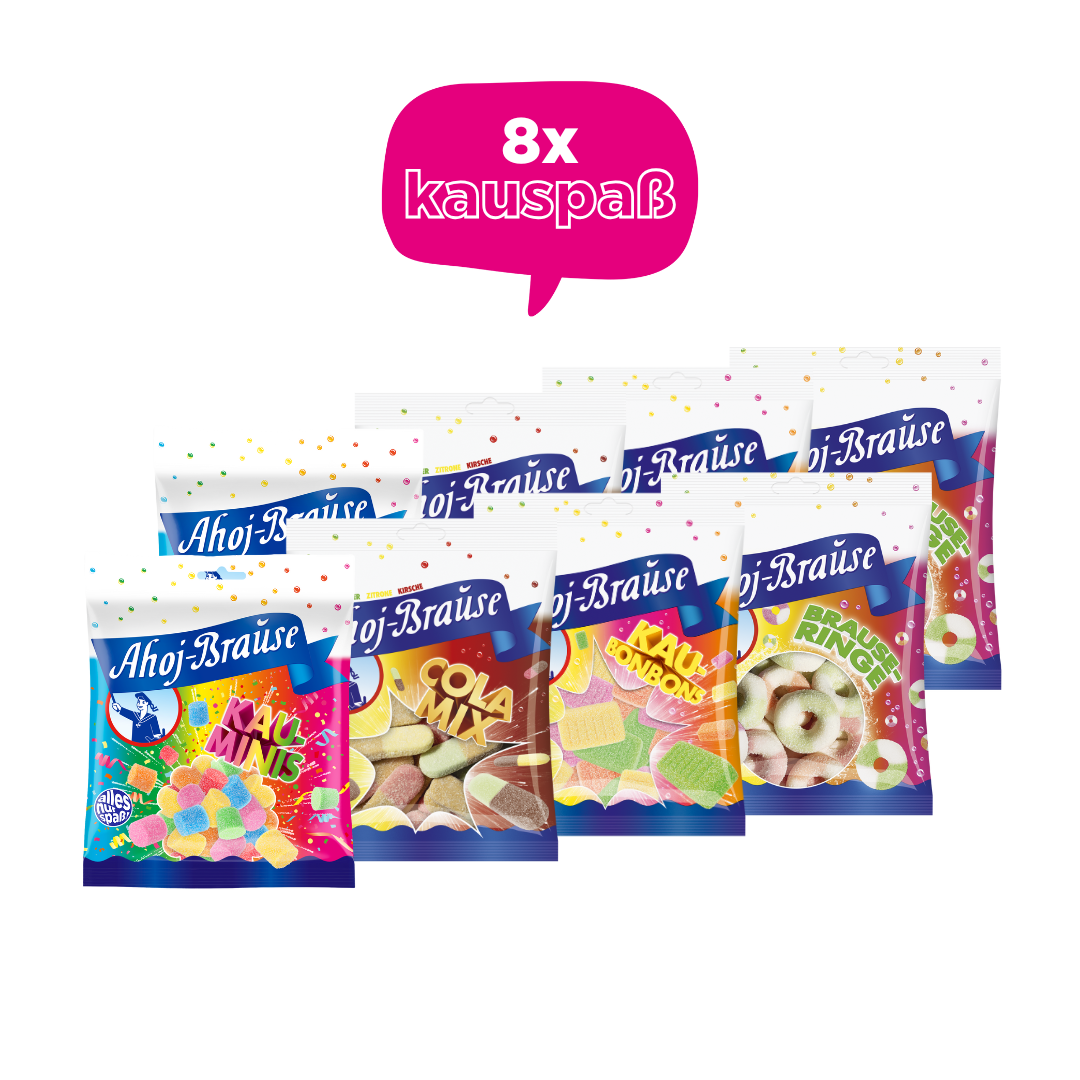 In der Ahoj-Brause Soft Box kriegst du unsere super prickelnden, Gummi- und Kaubonbons - die Kauminis, den Cola Mix, die Brause-Ringe und Kaubonbons, in einem 💯.