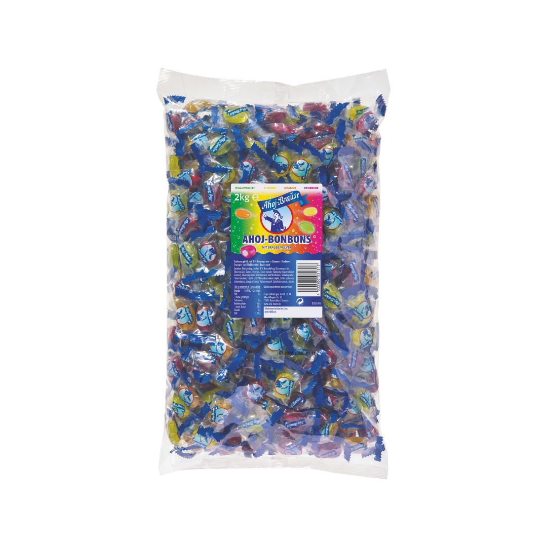 Mehr Bonbon. Mehr Brause. Mehr Prickeln! Unser 2-kg Megabeutel steckt randvoll mit ganzen 388 Ahoj-Bonbons, die dich immer wieder aufs Neue überraschen. Außen fruchtig-hart, innen ein versteckter Kern aus original Ahoj-Brause Pulver – sobald du ihn knackst, startet der volle Zisch-Moment. Ein XXL-Vorrat für alle, die es richtig prickeln lassen wollen 🚀.